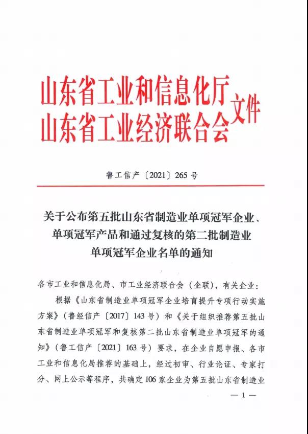 近日,山东省工业和信息化厅对第五批山东省制造业单项冠军名单进行公示,山东硅科新材料有限公司等106家企业被评为制造业单项冠军企,硅烷偶联剂等103种产品被评为制造业单项冠军产品。